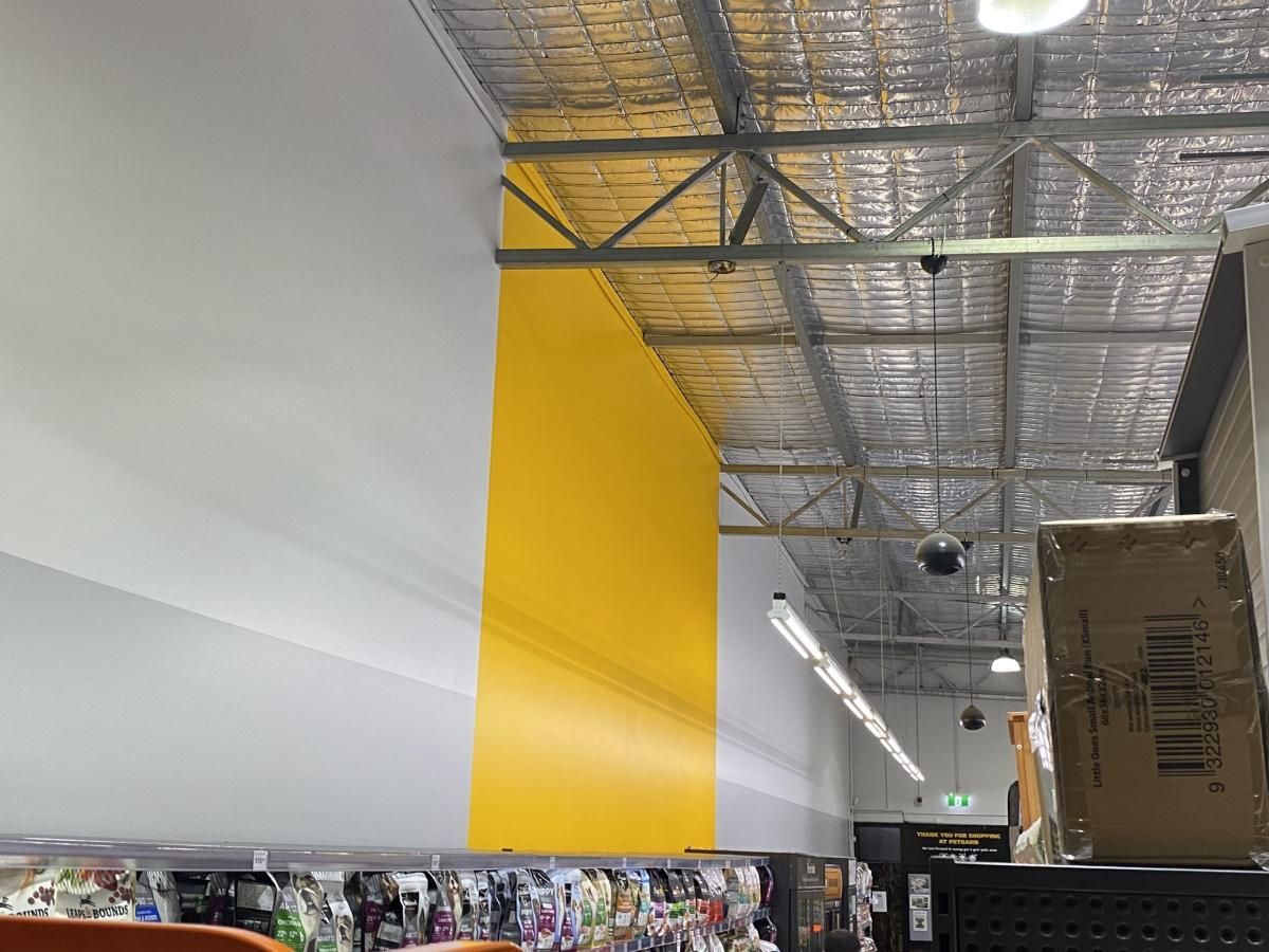 The task involved painting a large commercial space, Petbarn, in Singleton. With distinct feature walls of bright yellow against the white and grey walls throughout which required impeccable precision. Achieving perfect lines and smooth finishes was essential to highlight the business logo colours.